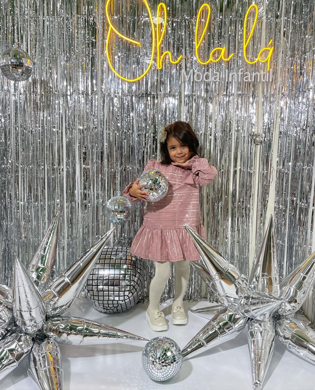Vestido palo rosa, con ligero brillo en lentejuela.